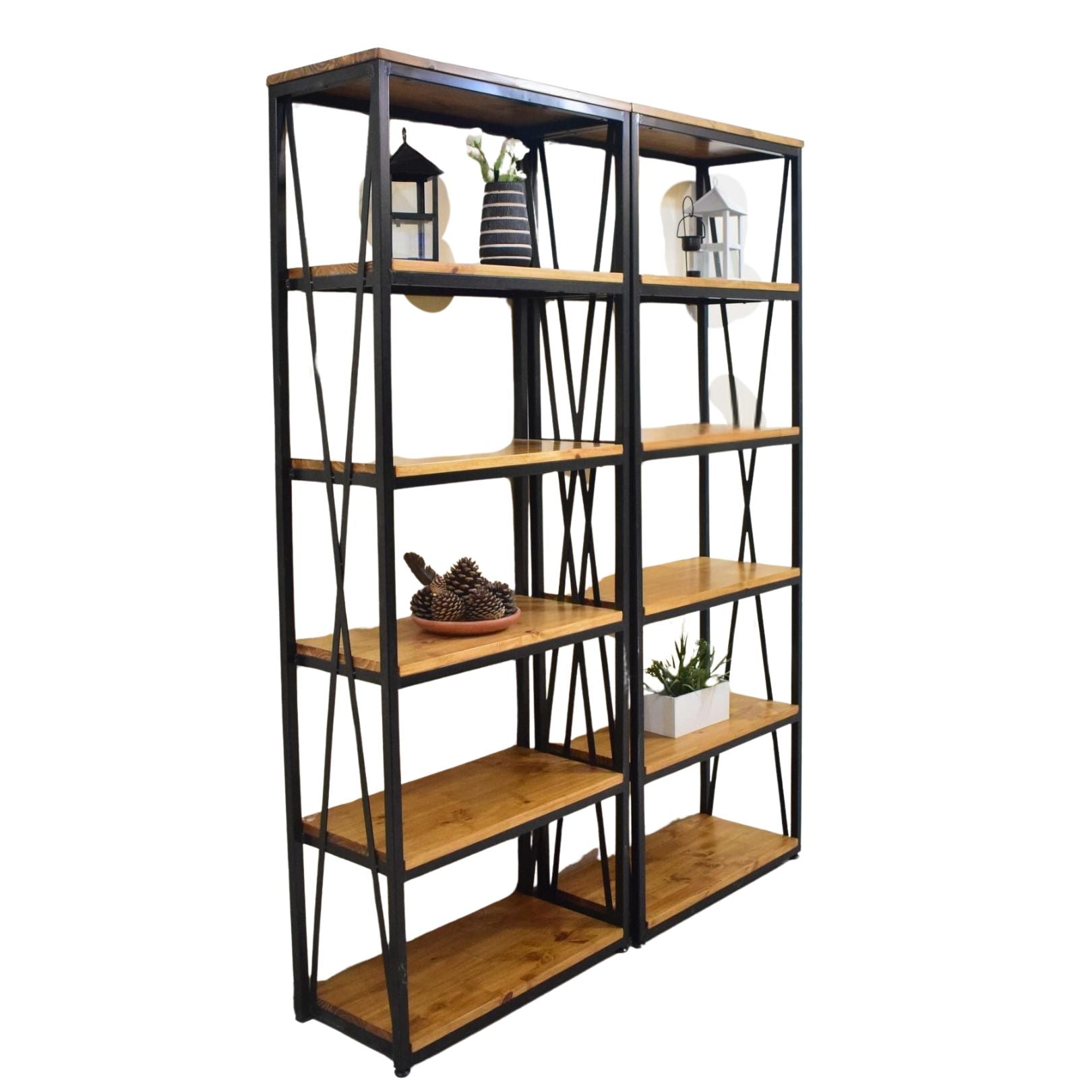 • Estantes en madera maciza de pino finger, libre de nudos y cepillada en todas sus caras
