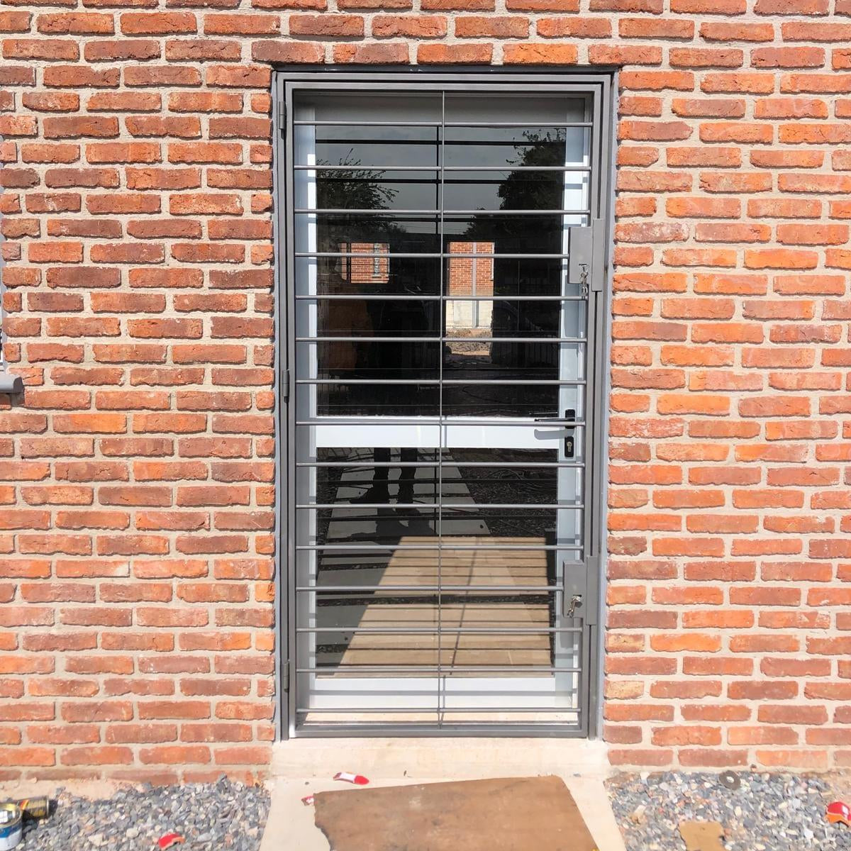 Puerta reja simple de 1 hoja batiente fabricada en hierro 100% nuevo, de fabricación nacional y alta resistencia.